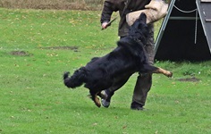 Am 30.10. 2016 hat Blizzart vom Löwenherz seine erste IPO3 bestanden. Mit 90 in der Fährte, 81 Pkt. in der Unterordnung und 92 in Abteilung C ist das sicherlich noch ausbaufähig. Es war schon eine sehr ansprechende Leistung von Blizzart. Jedoch hat Jürgen in Ermangelung von Erfahrung, den ein oder anderen Punkt auf dem Platz liegen gelassen. Es war aber sehr schön anzusehen und ich bin sicher, daß der ein oder andere Fehler zukünftig "Geschichte" sein wird.